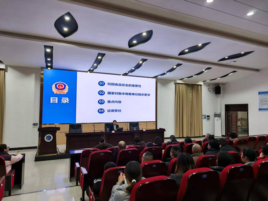 培训伊始,黎小琴科长便强调,校园食品安全直接关系到每一位学生的身体健康,牵动着万千家庭的幸福,是校园安全的重中之重,必须以“零容忍”态度防范各类风险。培训过程中,黎科长结合近期发生的食品安全案例,围绕校园食品安全的重要性、食材管理、后厨管理相关要求、各方承担的法律责任等核心内容展开深入讲解,通过“问题案例复盘+规范要求解读”的方式,让参会人员直观认识到食安漏洞的危害。她指出,食材采购需锁定合规供应商并建立溯源台账,实现“来源可查、去向可追、风险可控”,后厨操作要严守健康管理、清洁消毒等闭环规范,而学校、食堂及从业人员若触碰食安红线,必将承担相应法律后果,为在场管理者敲响警钟。
