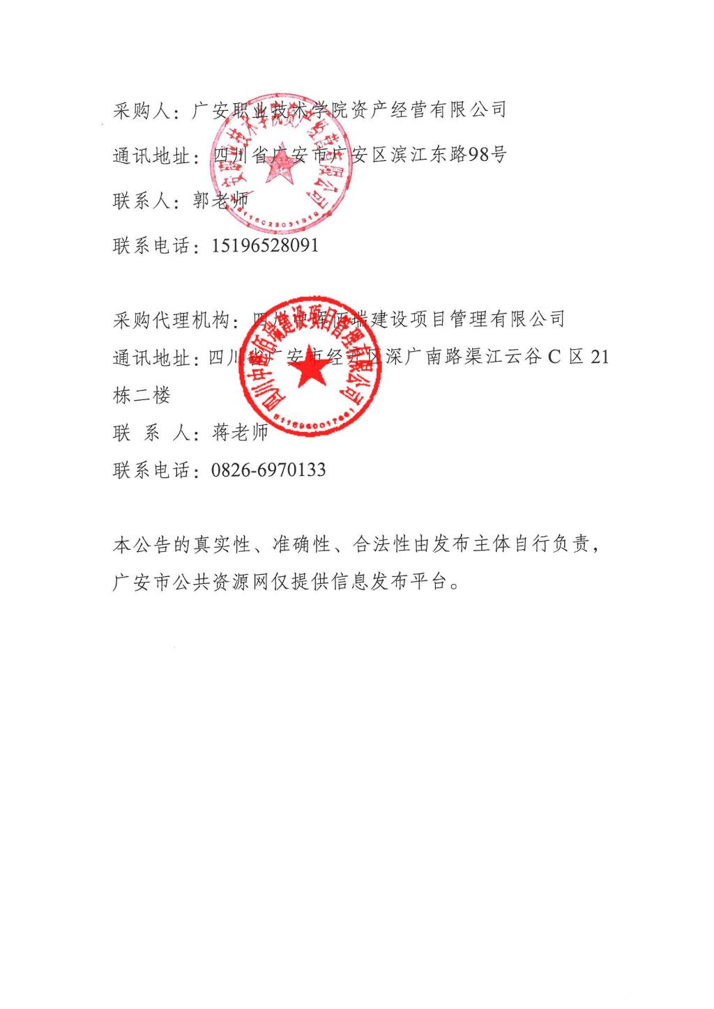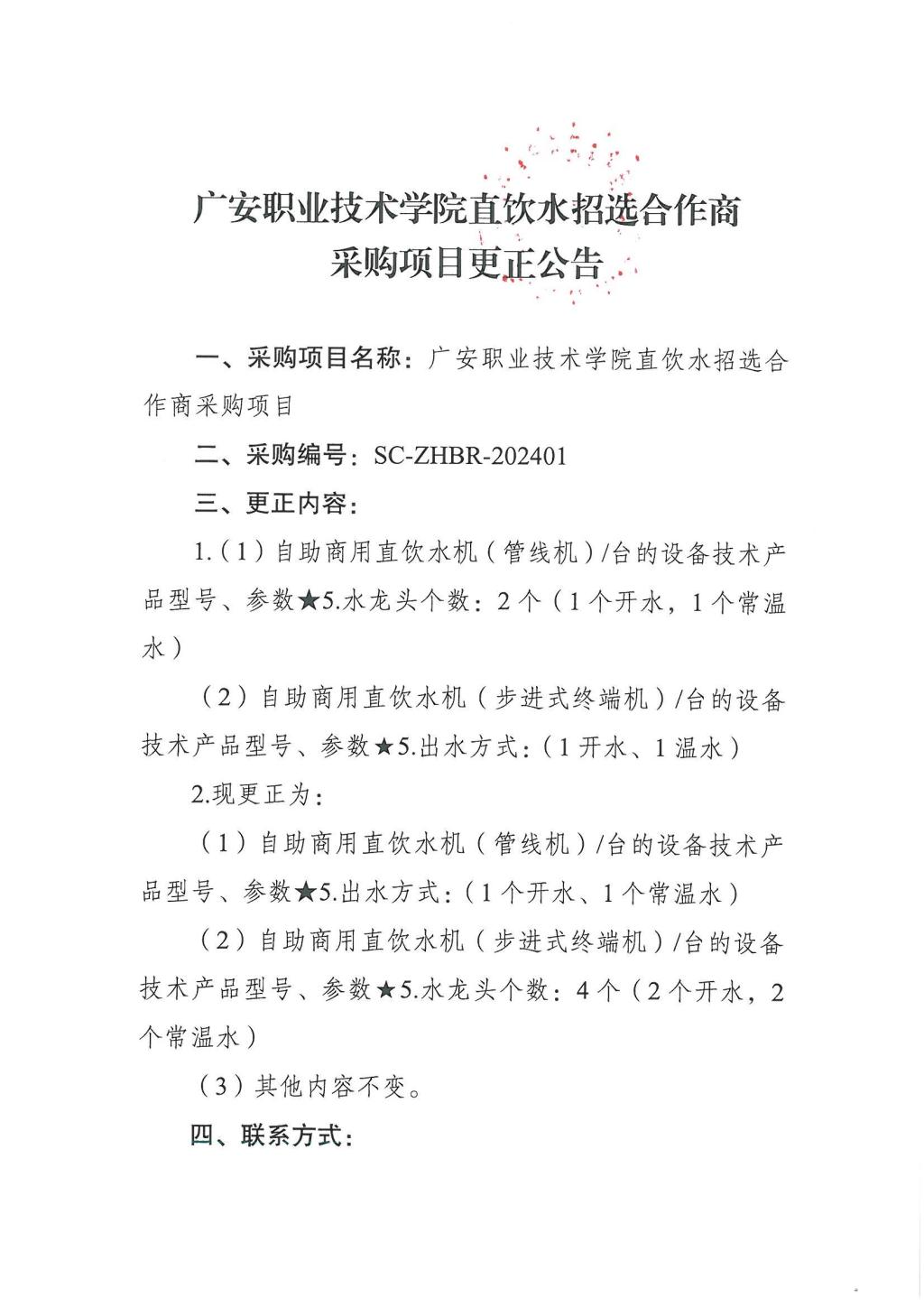 广安职业技术学院直饮水招选合作商采购项目更正公告(第二次)